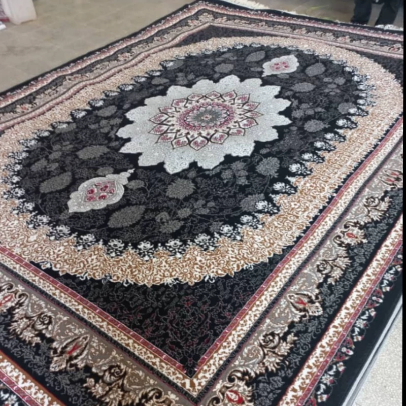 فرش ماشینی 12متری ارزان قیمت نقشه ژیوا مشکی(ارسال رایگان)