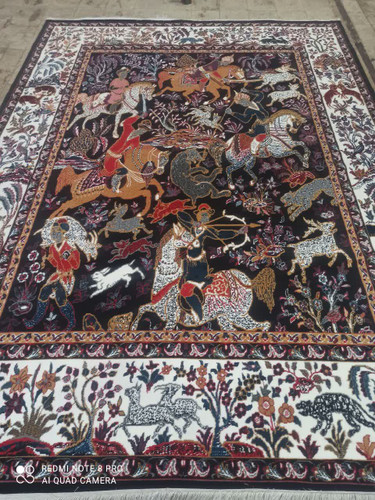 فرش ماشینی بی سی اف (BCF) 440شانه ارزان قیمت سایز 12منری نقشه شکارگاه مناسب جهیزیه