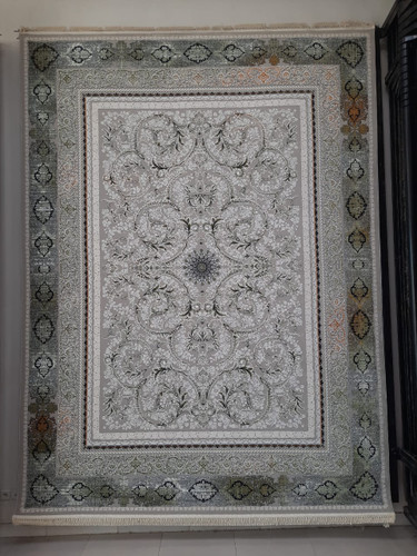 فرش ماشینی 12متری کاشان نقشه ویترین نقره ایی(ارسال رایگان)