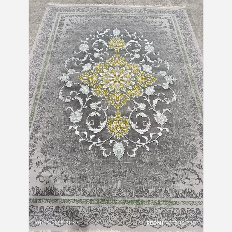 فرش ماشینی 6متری کاشان نقشه رومینا نقره ایی مناسب جهیزیه