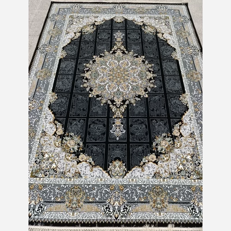 فرش ماشینی 6متری بی سی اف تراکم 700نقشه سوین مشکی(ارسال رایگان)