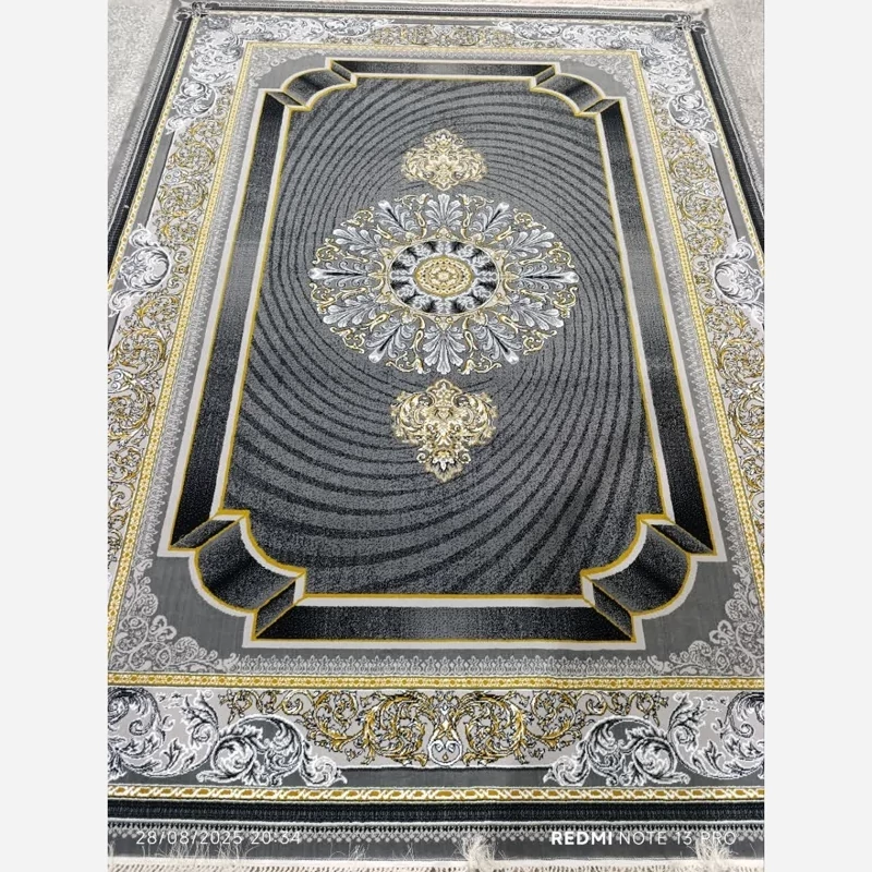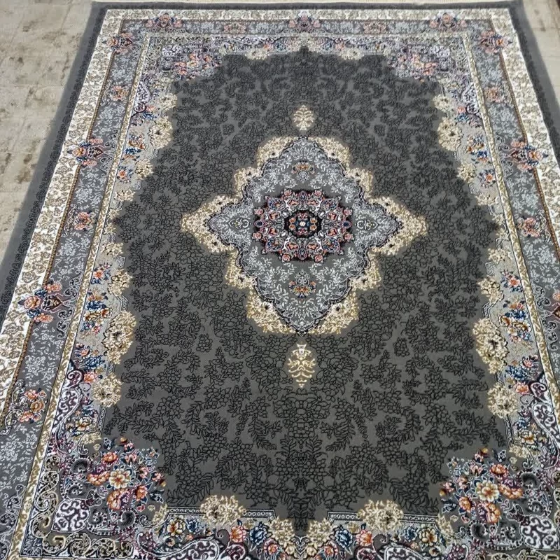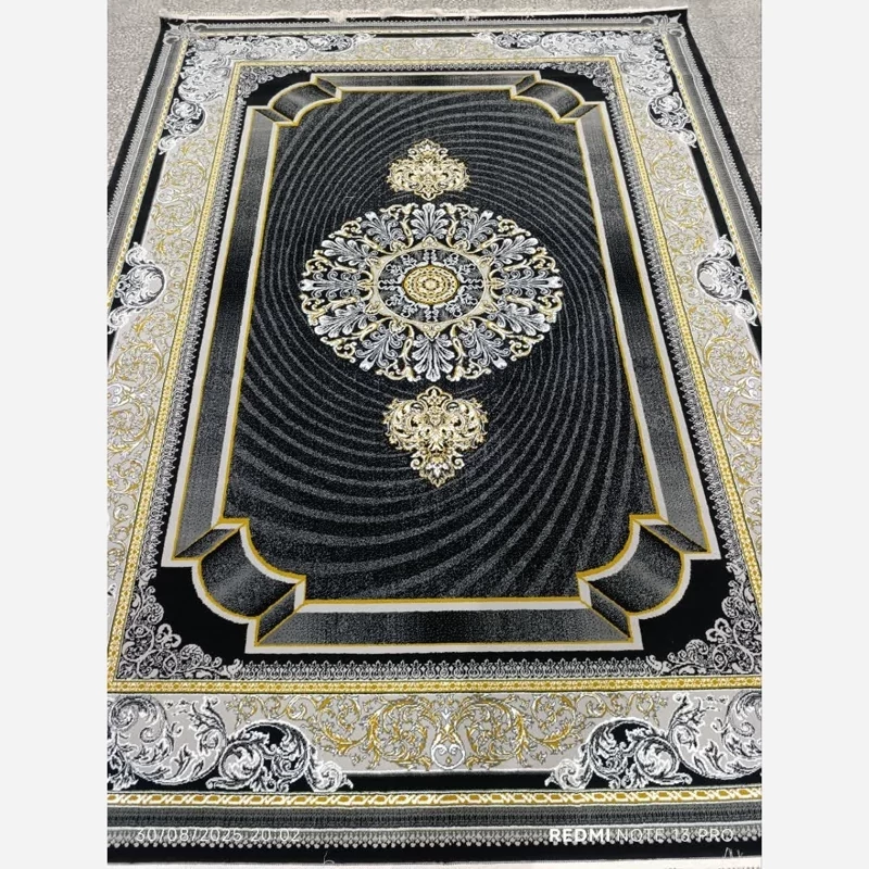 فرش ماشینی 12متری ارزان قیمت نقشه ژیوا مشکی(ارسال رایگان)