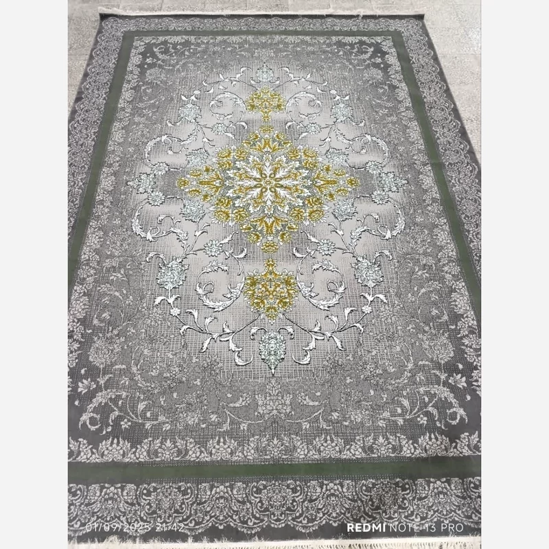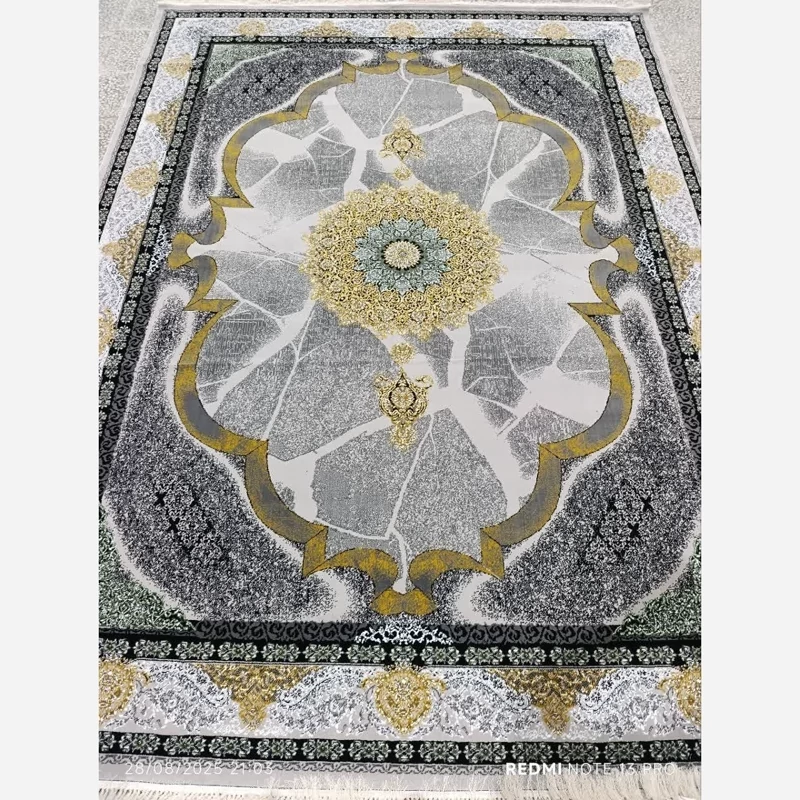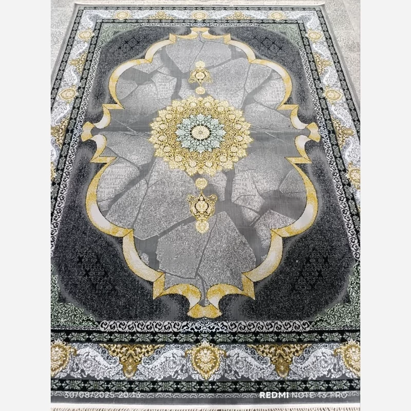 فرش ماشینی 12متری جدید نقشه زیبای ستاره نقره ایی مناسب جهیزیه