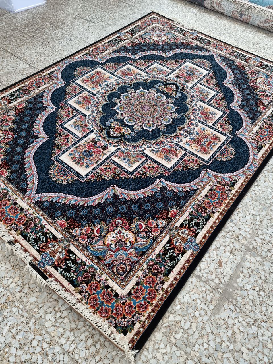 فرش ماشینی 6متری کاشان نقشه زیبای ناردون سرمه ایی 700شانه مناسب جهیزیه