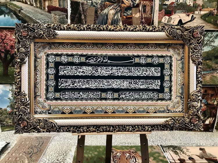 تابلو فرش آیه بافت (آیت الکرسی) ۱200شانه سایز 50در100همراه با قاب شاپرک و ارسال رایگان