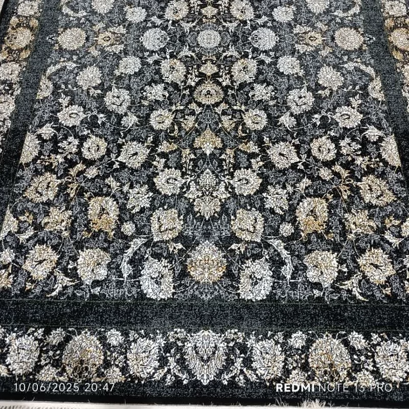 فرش ماشینی 6متری کاشان نقشه افشانک سرمه ایی بافت نرم و زیبا