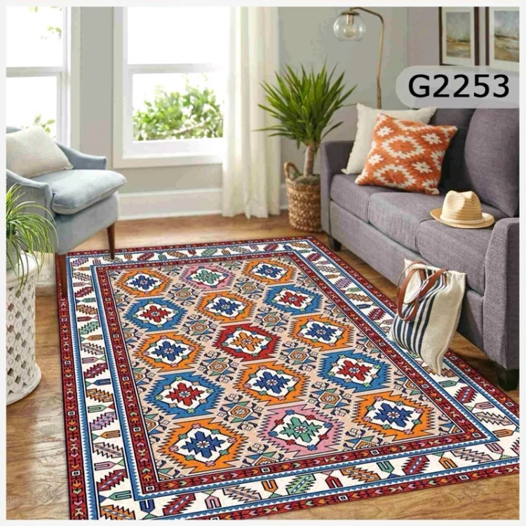 فرشینه مخمل ترک هازان 4متری طرح گلیم سنتی مناسب دکوراسیون خاص