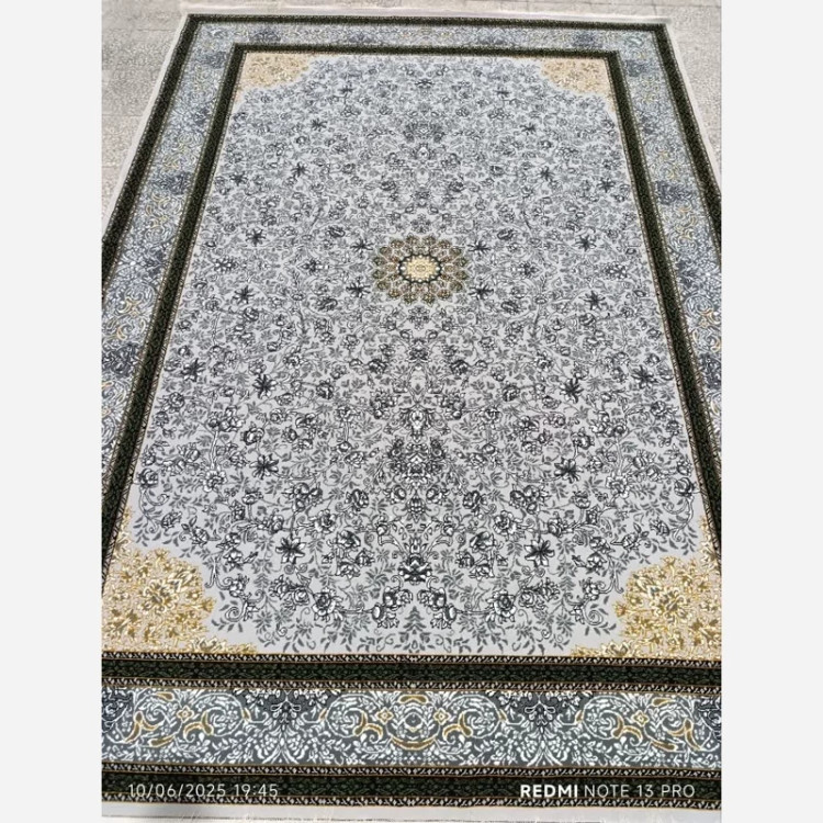 فرش ماشینی9متری جدید کاشان نقشه باران نقره ایی مناسب جهیزیه