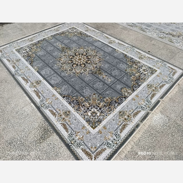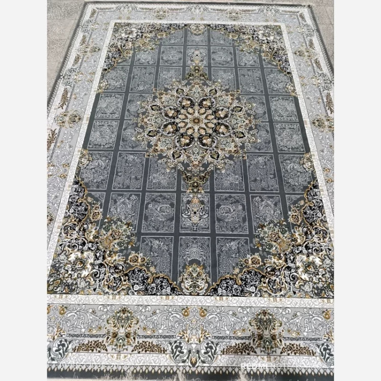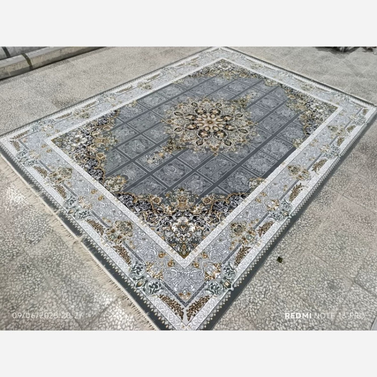 فرش 12متری ماشینی جدید کاشان نقشه زیبای رومینا دودی بافت نرم و زیبا