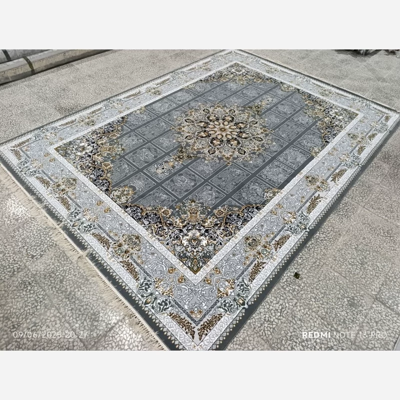 فرش 12متری ماشینی جدید کاشان نقشه زیبای رومینا دودی بافت نرم و زیبا