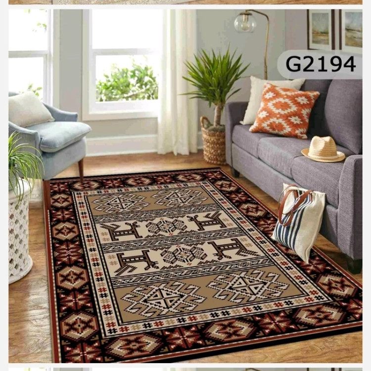 فرشینه مخمل ترک هازان 4متری طرح گلیم سنتی مناسب دکوراسیون داخلی