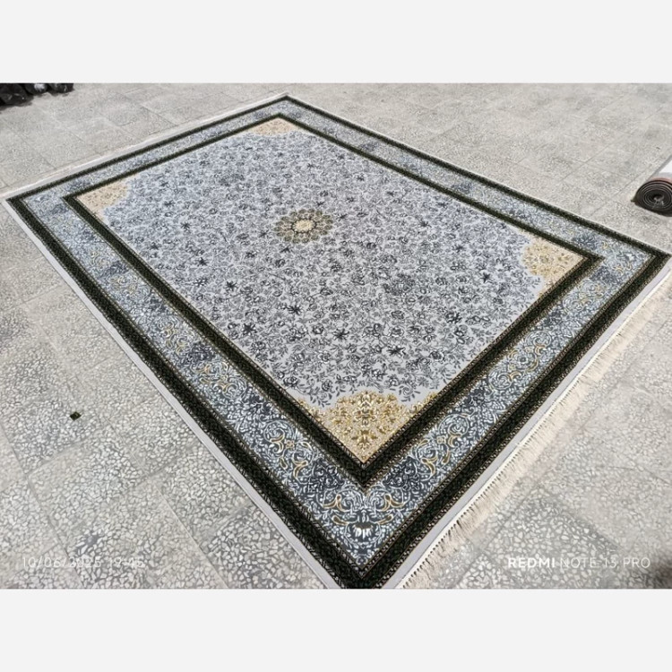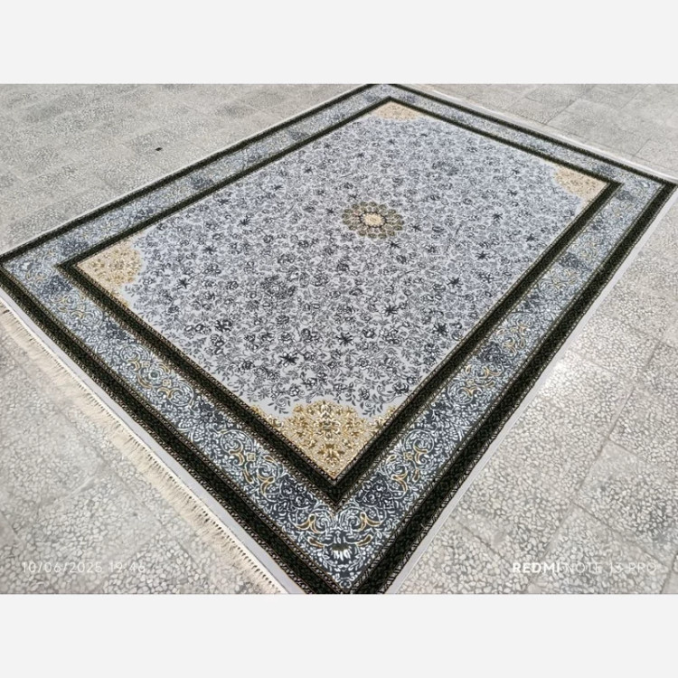فرش 6متری جدید نقشه باران نقره ایی مناسب دکوراسیون لوکس