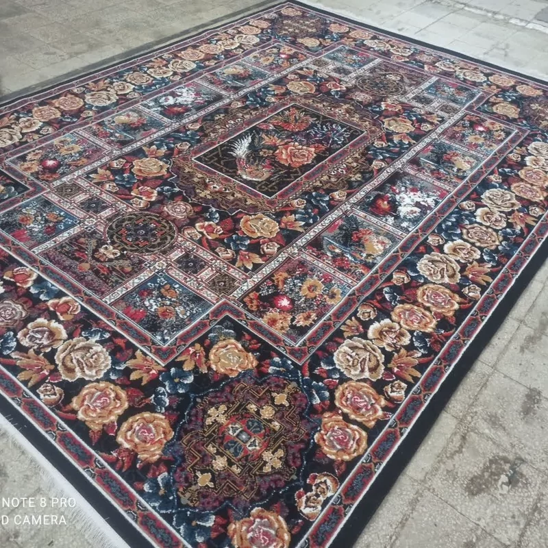 فرش ماشینی 9متری کاشان نقشه باغ ارم مناسب جهیزیه
