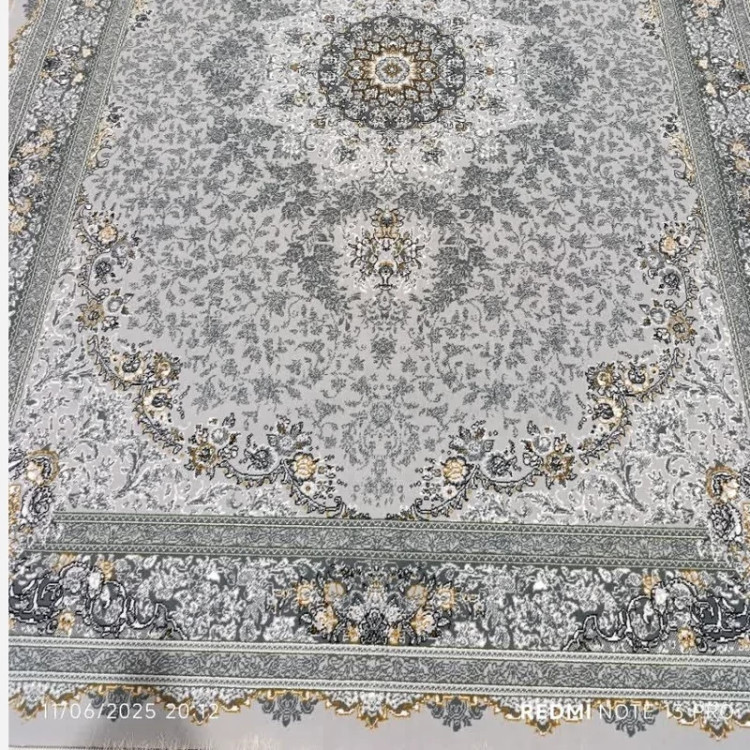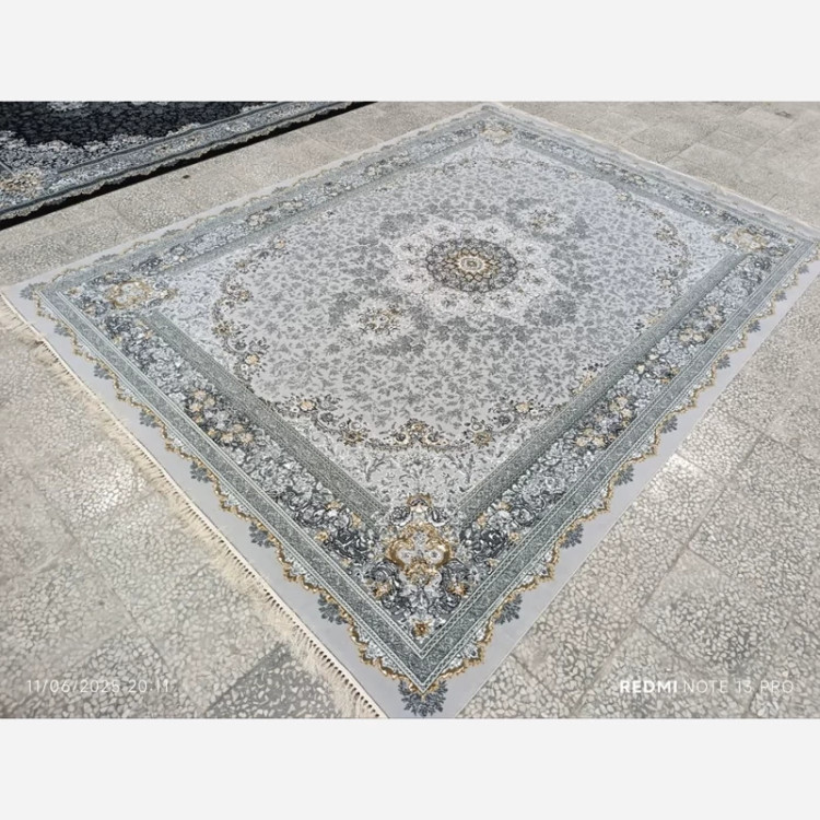 فرش ماشینی 12متری جدید کاشان نقشه کایرا نقره ایی مناسب جهیزیه