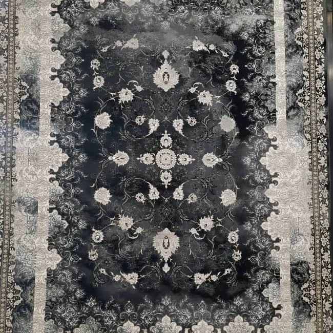 فرش ماشینی 12متری 700شانه کاشان نقشه زیبای یسنا سرمه ایی بافت نرم وزیبا
