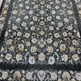 فرش ماشینی 12متری کاشان نقشه زیبای افشانک سرمه ایی بافت نرم
