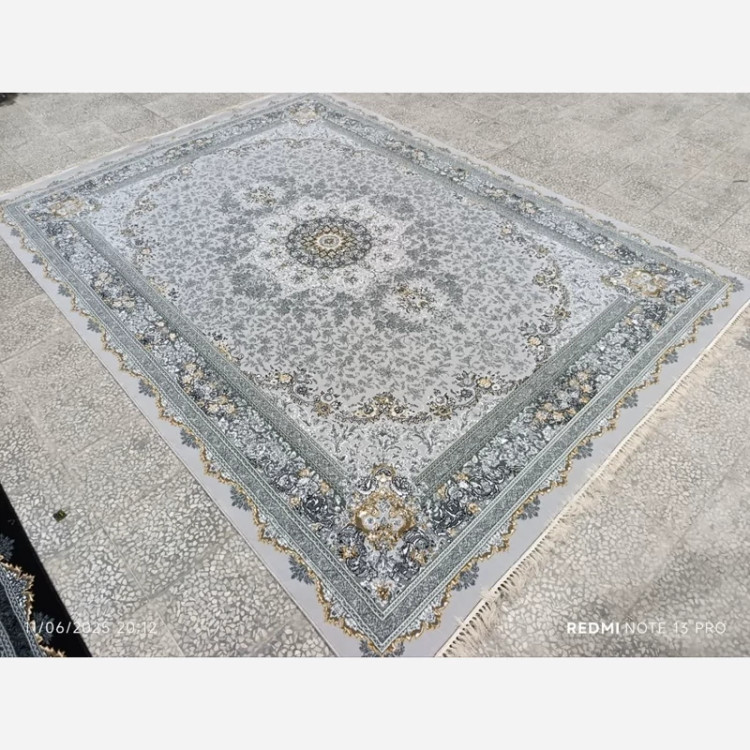 فرش ماشینی 6متری کاشان نقشه زیبای کایرا نقره ایی مناسب دکوراسیون لوکس