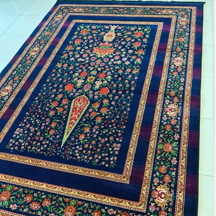 فرش4متری ماشینی جدید کاشان کلکسیون الگا سرمه ایی مناسب جهیزیه