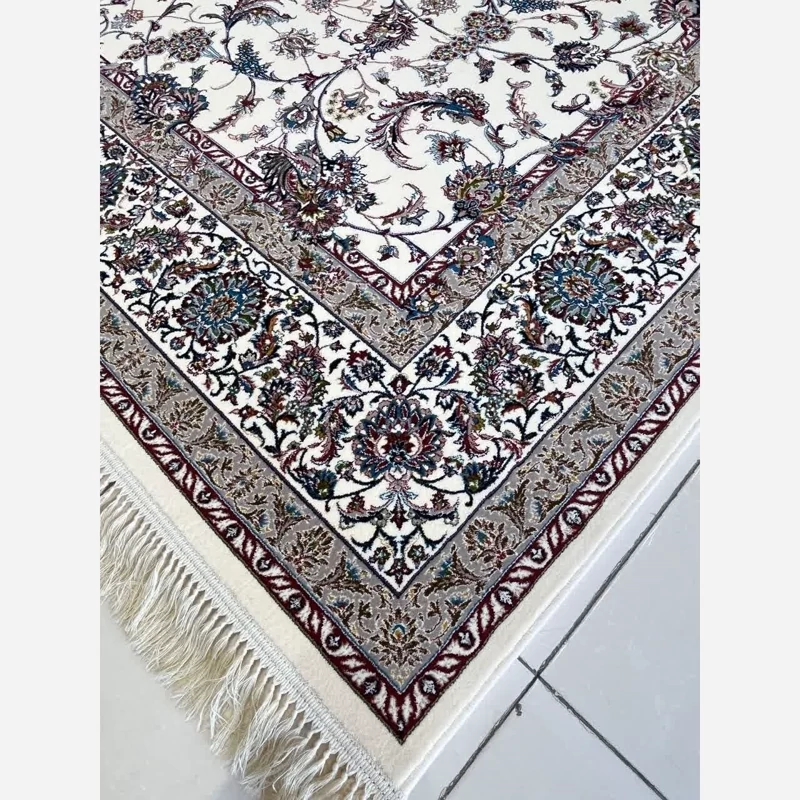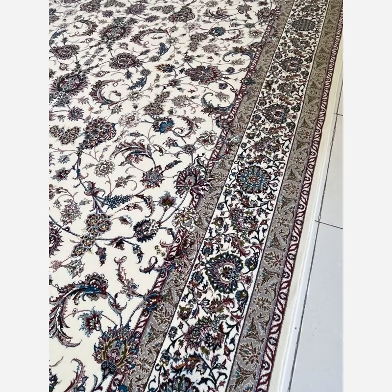 فرش6متری 700شانه ماشینی تمام اکریلیک سنگین وزن کاشان نقشه زیبای افشان کرم درباری