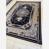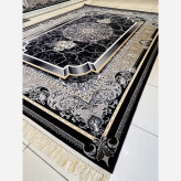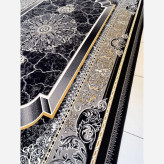 فرش ماشینی 700شانه 6متری اکریلیک سنگین وزن کاشان نقشه موج سرمه ایی مناسب دکوراسیون لوکس