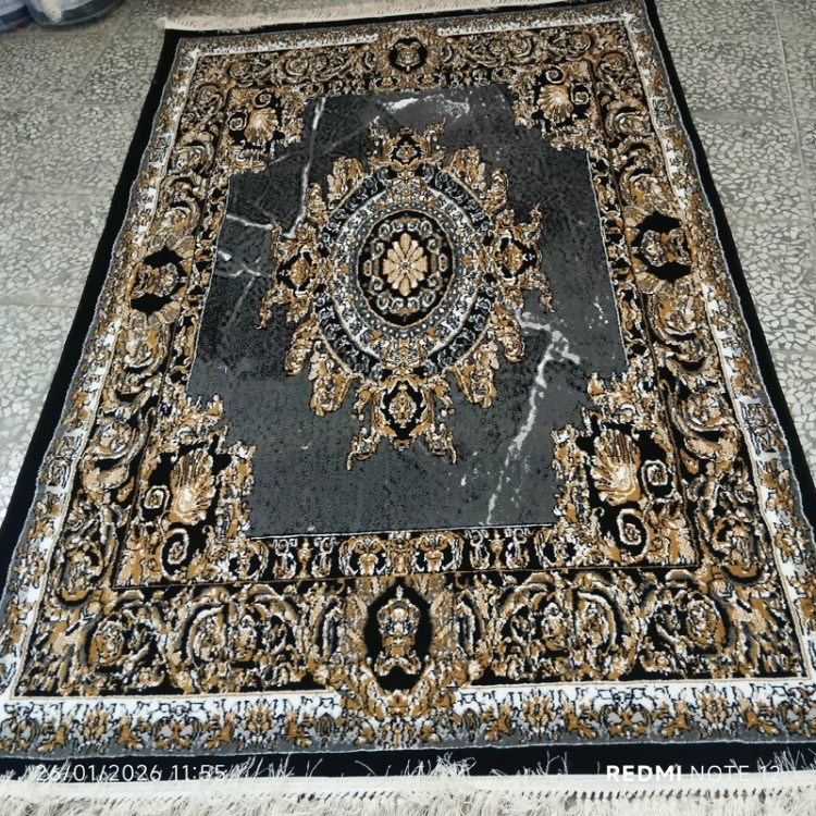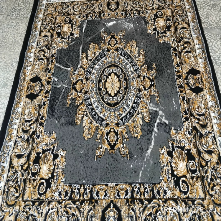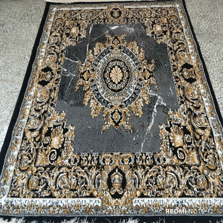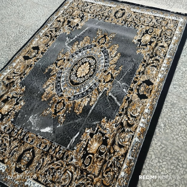 💐فرش ماشینی4متری اقتصادی جدید 440شانه نقشه زیبای ژیوا مشکی