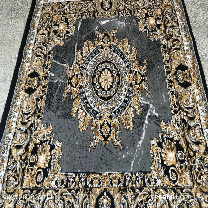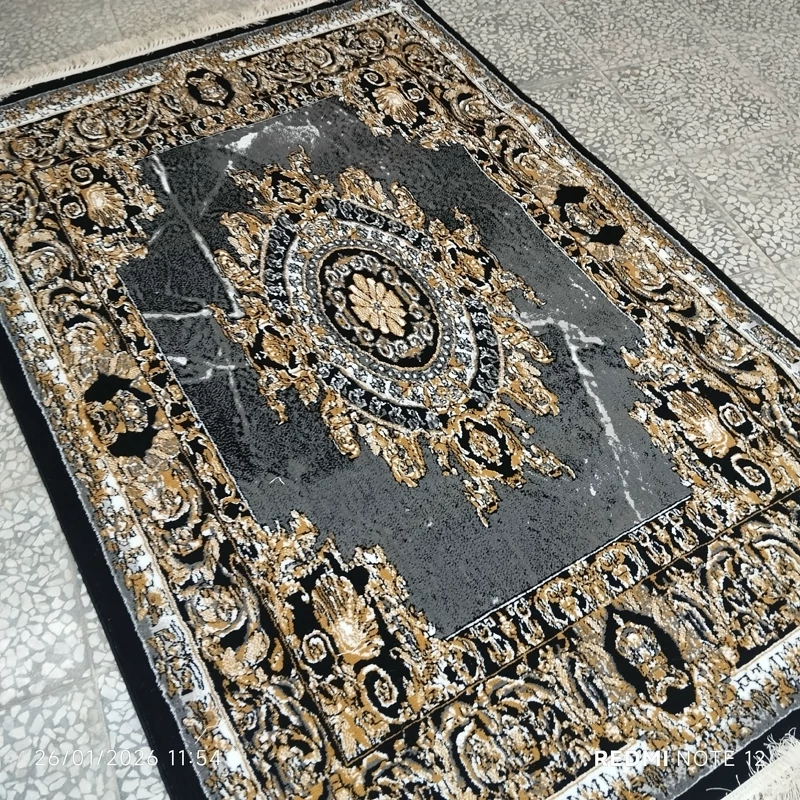 💐فرش ماشینی4متری اقتصادی جدید 440شانه نقشه زیبای ژیوا مشکی