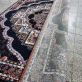 فرش ماشینی6متری کاشان نقشه زیبای ناردون سرمه ایی بافت نرم و زیبا