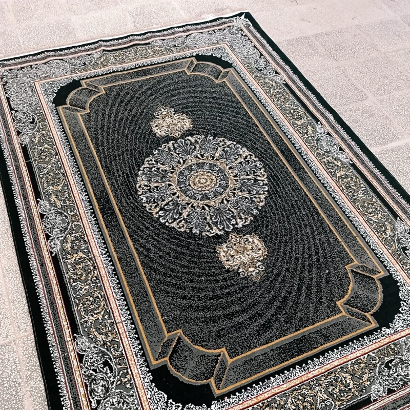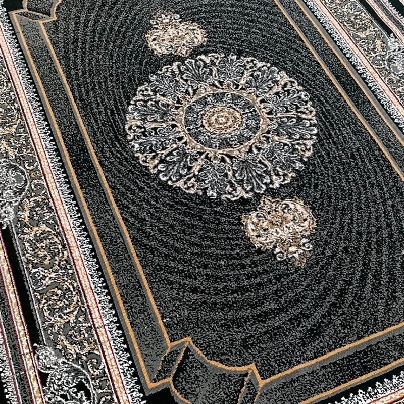 فرش ماشینی 9متری اقتصادی کاشان نقشه زیبای موج مشکی