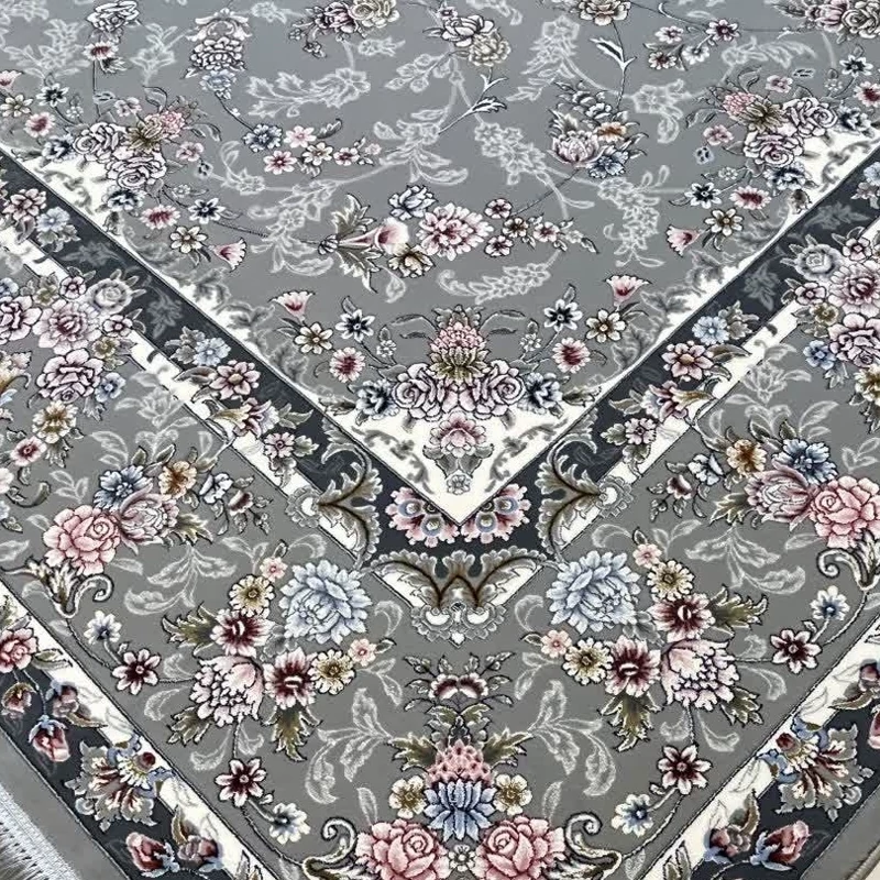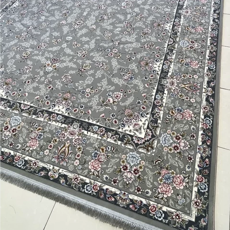 فرش12متری ماشینی 700شانه اکریلیک سنگین وزن کاشان نقشه افرانقره ایی مناسب جهیزیه