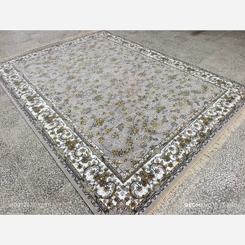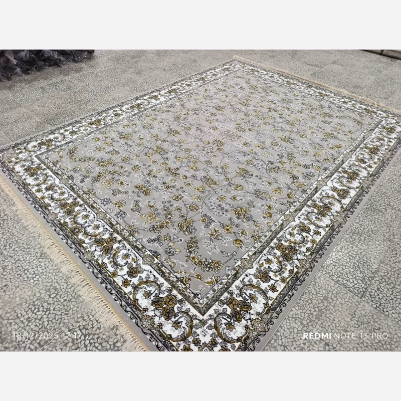 💐فرش ماشینی 12متری اقتصادی جدید 440شانه نقشه زیبای فرحنازنقره ایی مناسب دکوراسیون خاص