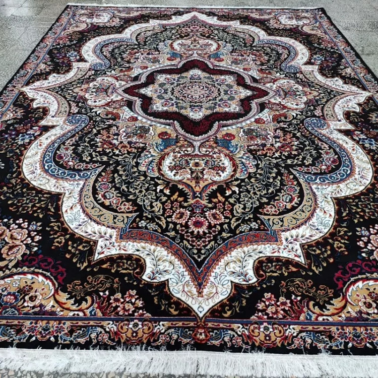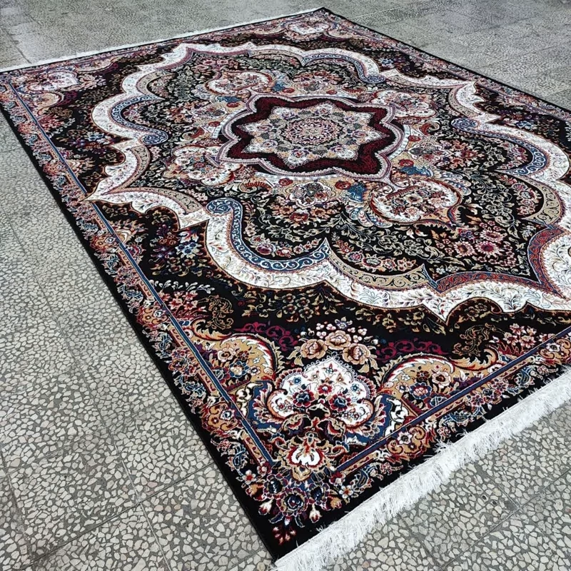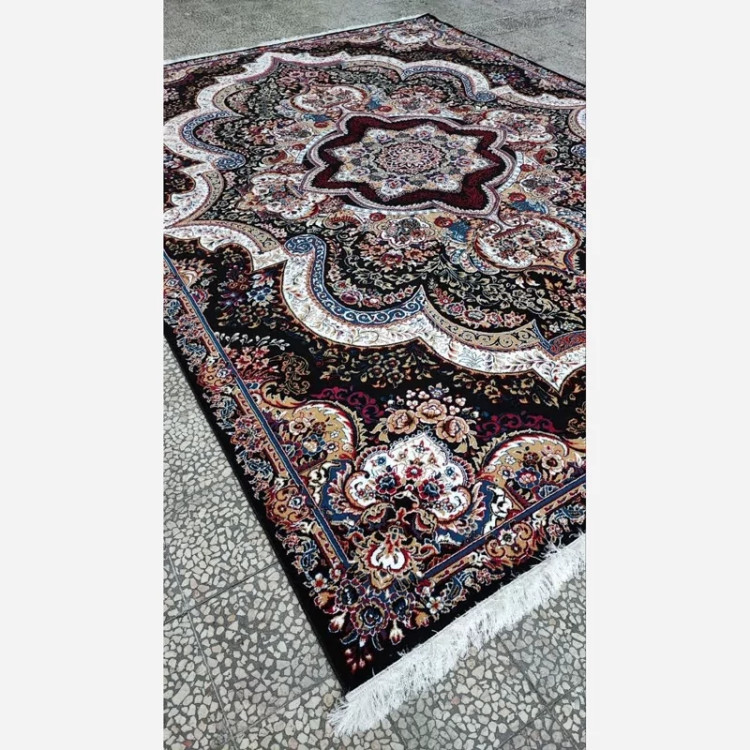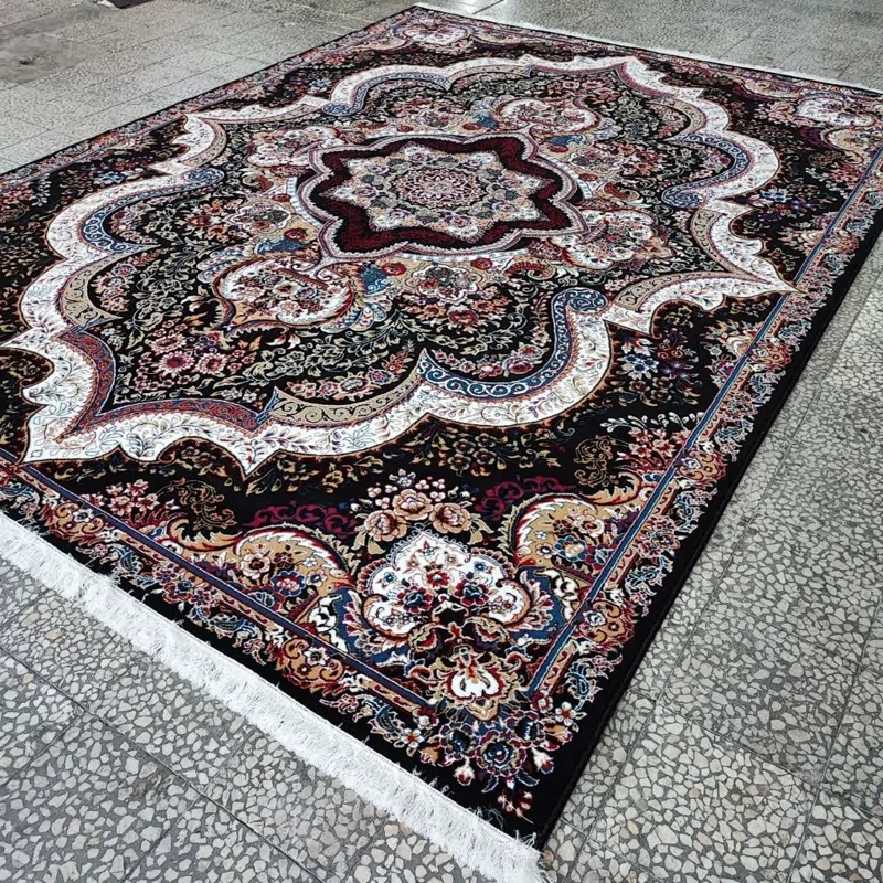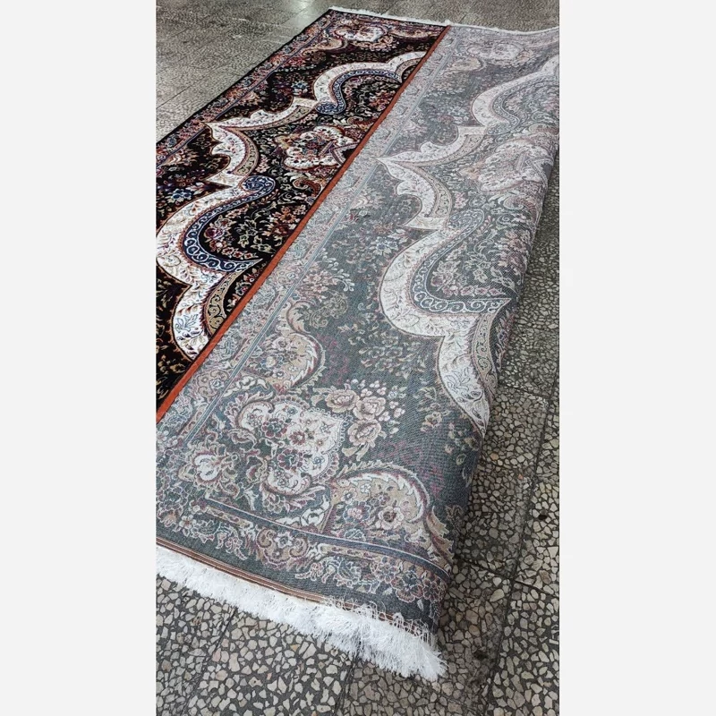 فرش ماشینی 6متری جدیدکاشان نقشه شهیادسرمه ایی بافت نرم و زیبا
