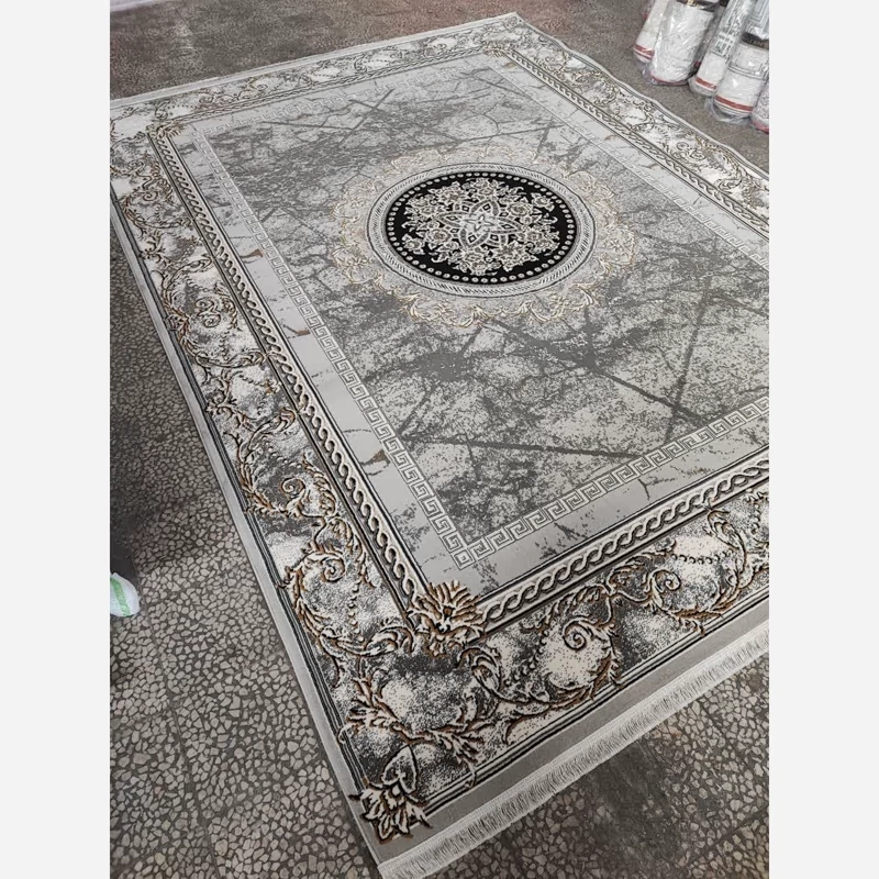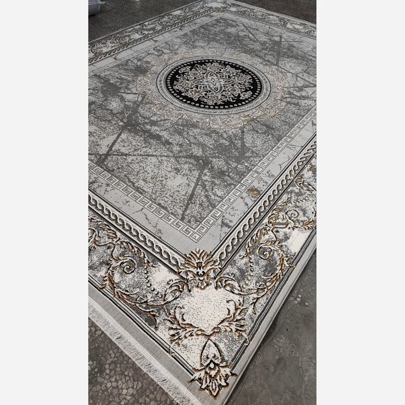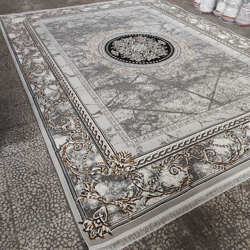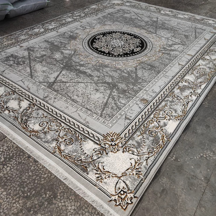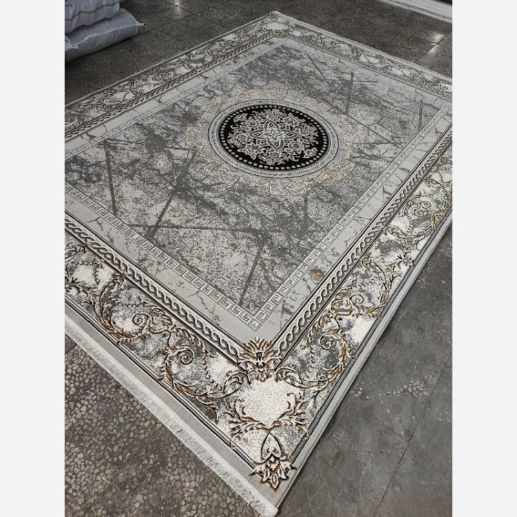 فرش ماشینی 12متری جدید کاشان نقشه زیبای مدوسانقره ایی مناسب جهیزیه