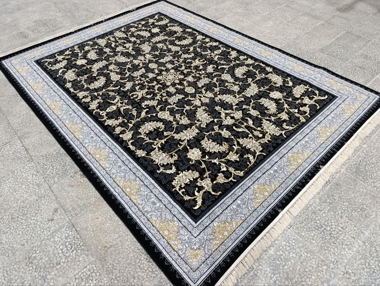 فرش ماشینی 9متری جدیدکاشان نقشه نگار مشکی(ارسال رایگان)
