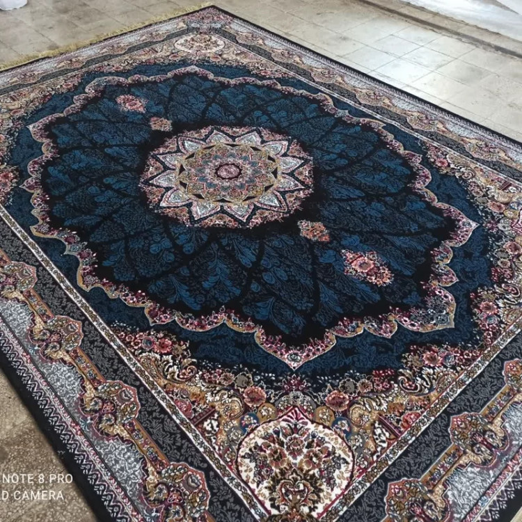 فرش ماشینی 9متری کاشان تراکم 700 نقشه شیدا سرمه ایی (ارسال رایگان)