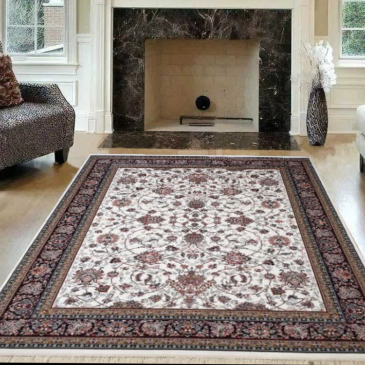 فرش ماشینی 9متری کاشان نقشه افشان سفید(ارسال رایگان)