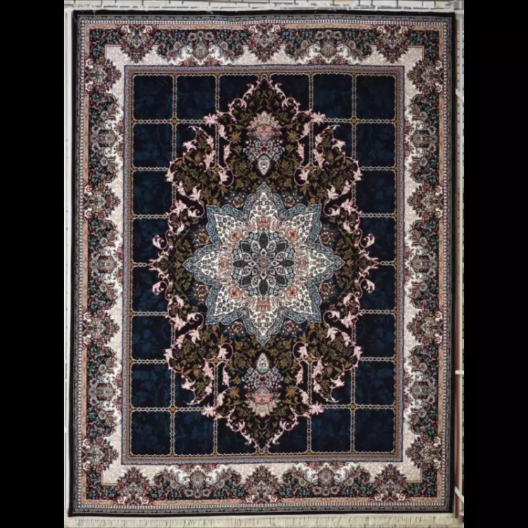 فرش12متری اقتصادی کاشان نقشه زیبای رومینا مشکی