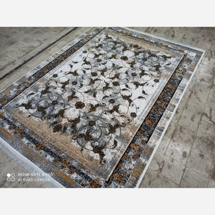 فرش ماشینی 12متری کاشان نقشه تلما سفید(ارسال رایگان)