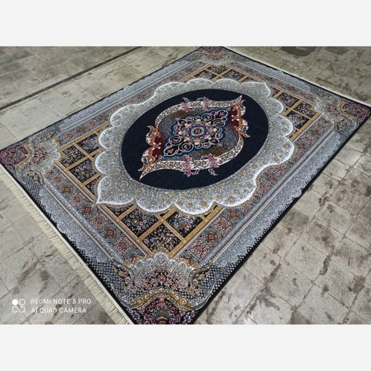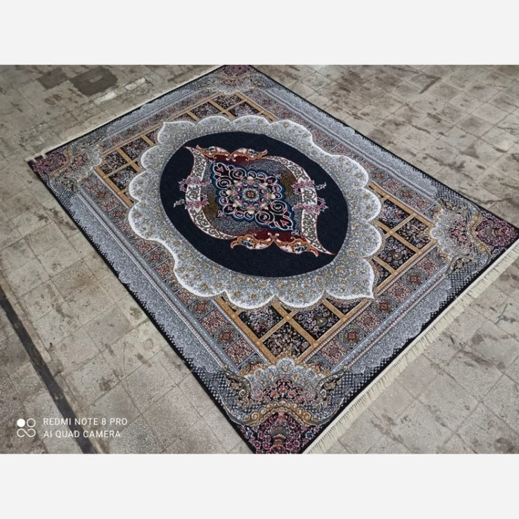 فرش ماشینی 12متری جدید کاشان نقشه مانیا سرمه ایی(ارسال رایگان)