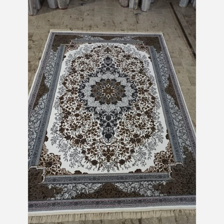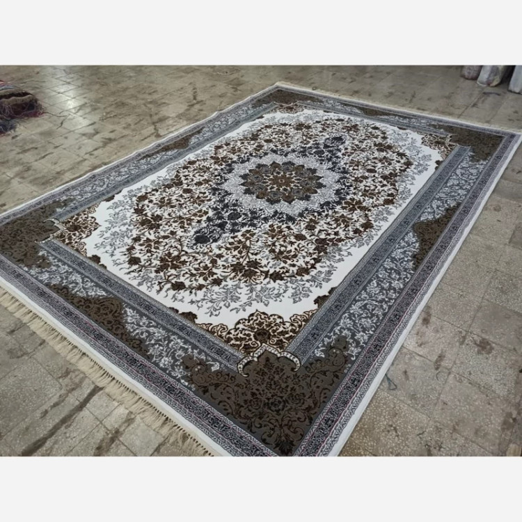 فرش ماشینی 12متری جدید کاشان نقشه تندیس سفید(ارسال رایگان)
