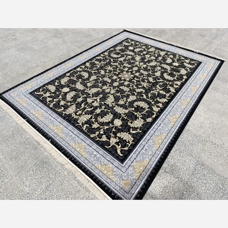 فرش ماشینی کاشان 12متری نقشه نگارمشکی(ارسال رایگان)