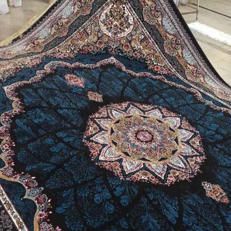 فرش ماشینی12متری بی سی اف 440شانه تراکم 700 نقشه شیدا سرمه ایی