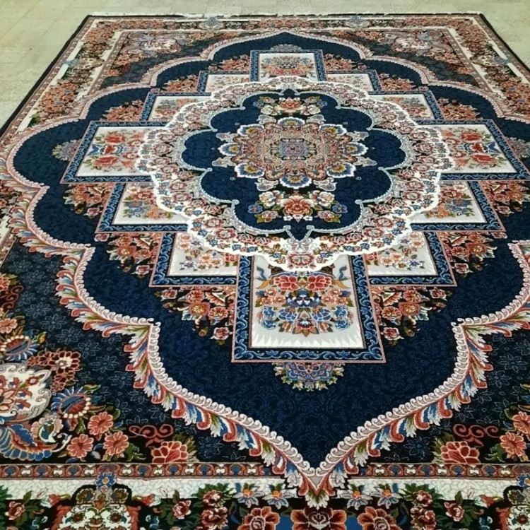 فرش ماشینی 500شانه کاشان نقشه ناردون سرمه ایی 12متری ورژن(ارسال رایگان)