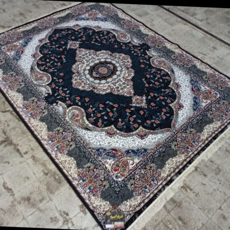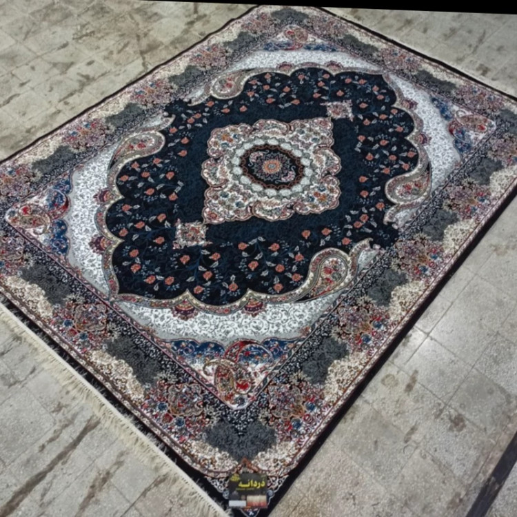 فرش ماشینی 12متری کاشان نقشه سوگند سرمه ایی(ارسال رایگان)