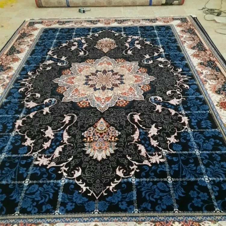 فرش ماشینی 500شانه کاشان 12متری ورژن نقشه هیوا سرمه ایی(ارسال رایگان)