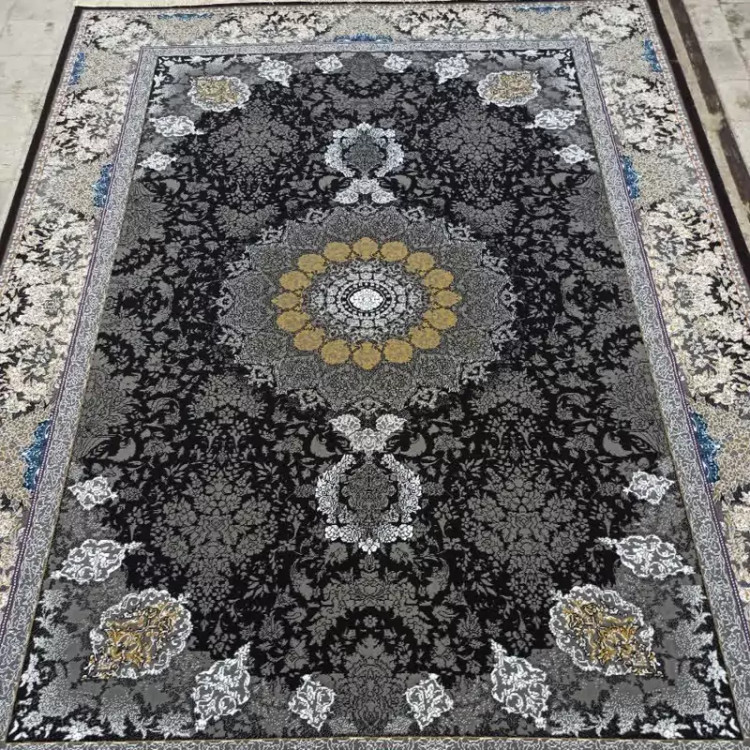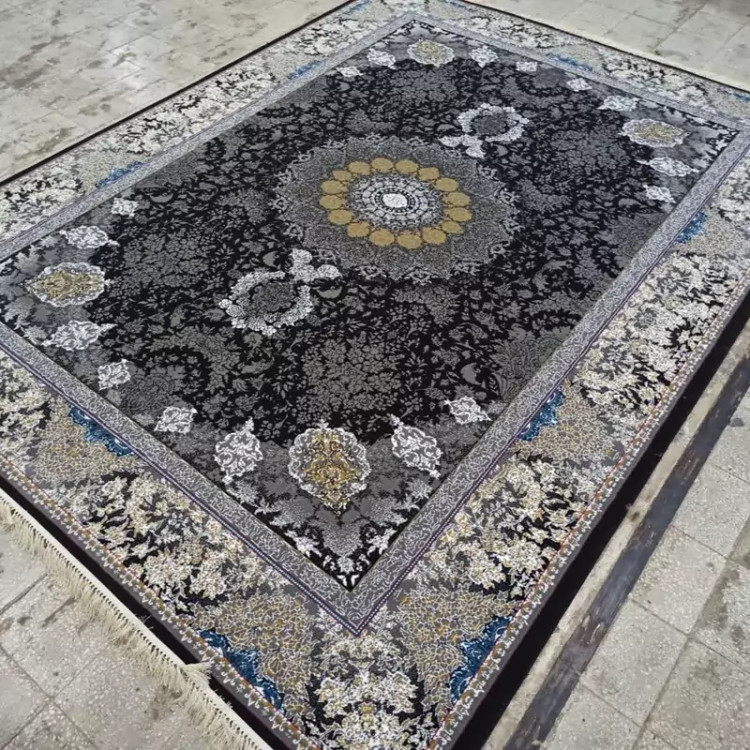 فرش 12متری جدیدکاشان440شانه نقشه سوین مشکی (ارسال رایگان)