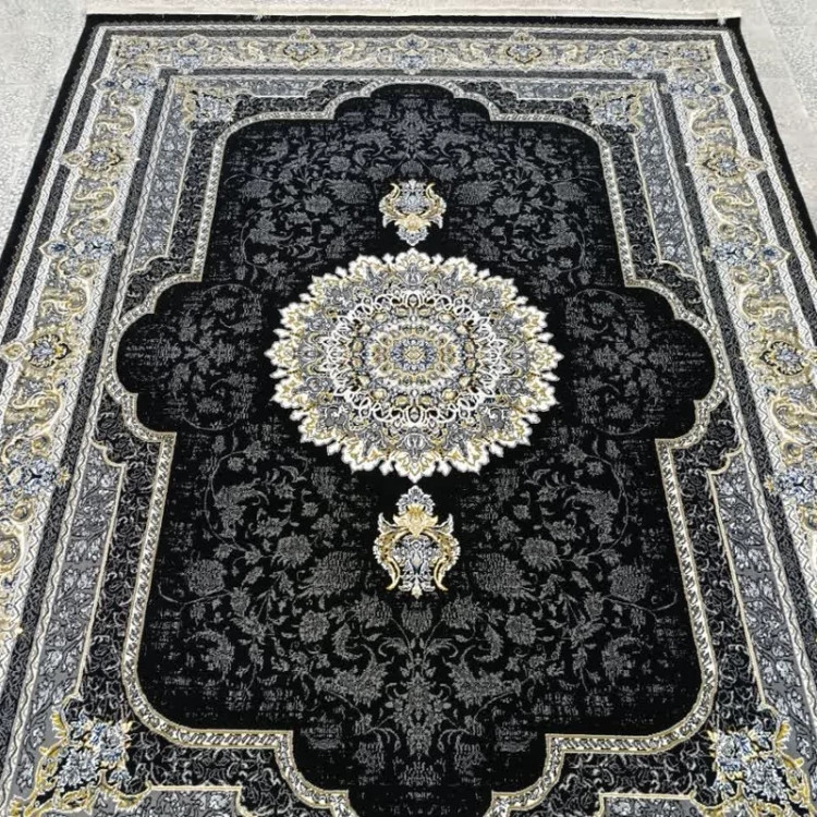 فرش ماشینی کاشان 12متری نقشه سروش مشکی(ارسال رایگان)